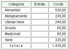 Alimentari, abbigliamento, telefonia, bollette, spese mediche, spese scolastiche, trasporti e cosi via...