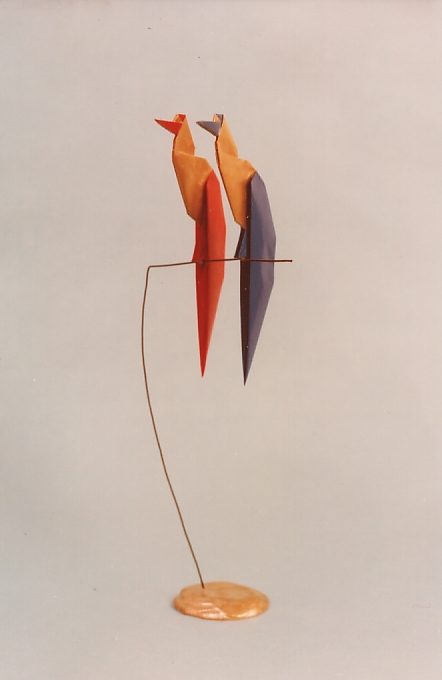 Airone (variante della gru tradizionale (riportata sul libro Origami Moderno J.M.Sakoda). Realizzati di diverse dimensioni di cui la più alta di 170 cm. L'oggetto è sostenuto da una struttura in fil di ferro e una base in scagliola.