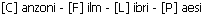 Le risposte (abbinamenti), contenute nella sezione destra, riportano titoli e paesi riconoscibili rispettivamente da un carattere, racchiuso tra parentesi quadre, secondo la seguente codifica: